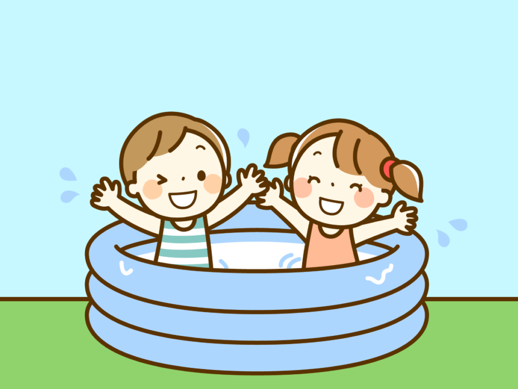 プール遊びでは魚やアヒルのおもちゃを浮かばせて魚釣りのように取って遊ぶ子や、器に入れて別の器に移し替えて遊んだりと、思い思いの遊び方で楽しむ姿が見られました。顔に少し水がついても泣かずに遊んでいる子どもたち。まだまだ暑い日が続くので、9月も水遊びを行っていきたいと思います。