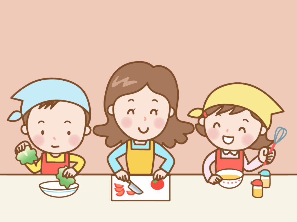 お手伝いは買い物で一緒に食材を選ぶ・お箸を運ぶ・机を拭くなど、子どもができる範囲で参加することからはじめてみましょう。
